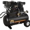 Frame: Powder coated ASME receiver tank · 3/16-inch base plate to reduce vibration · 16-gauge powder coated two-piece belt guard · 10-inch flat-free tires
